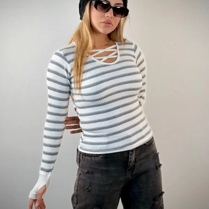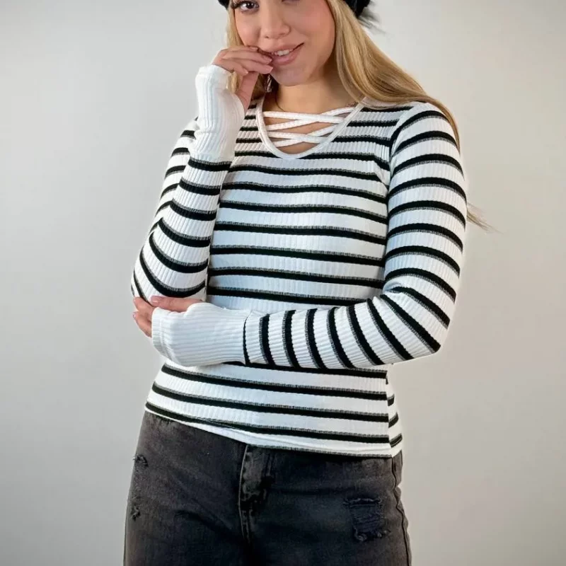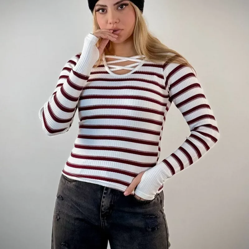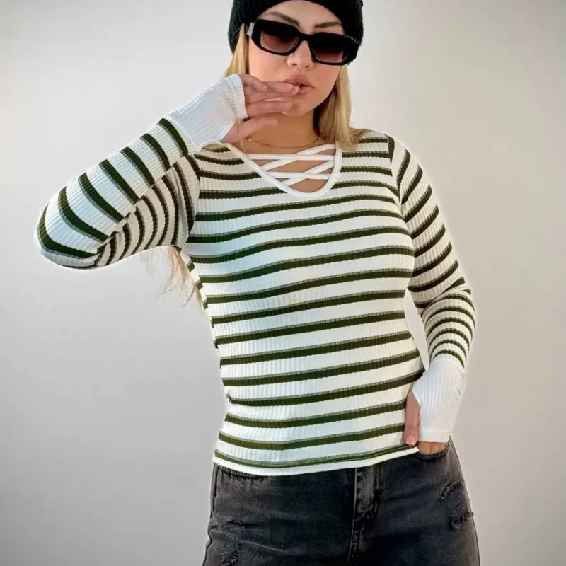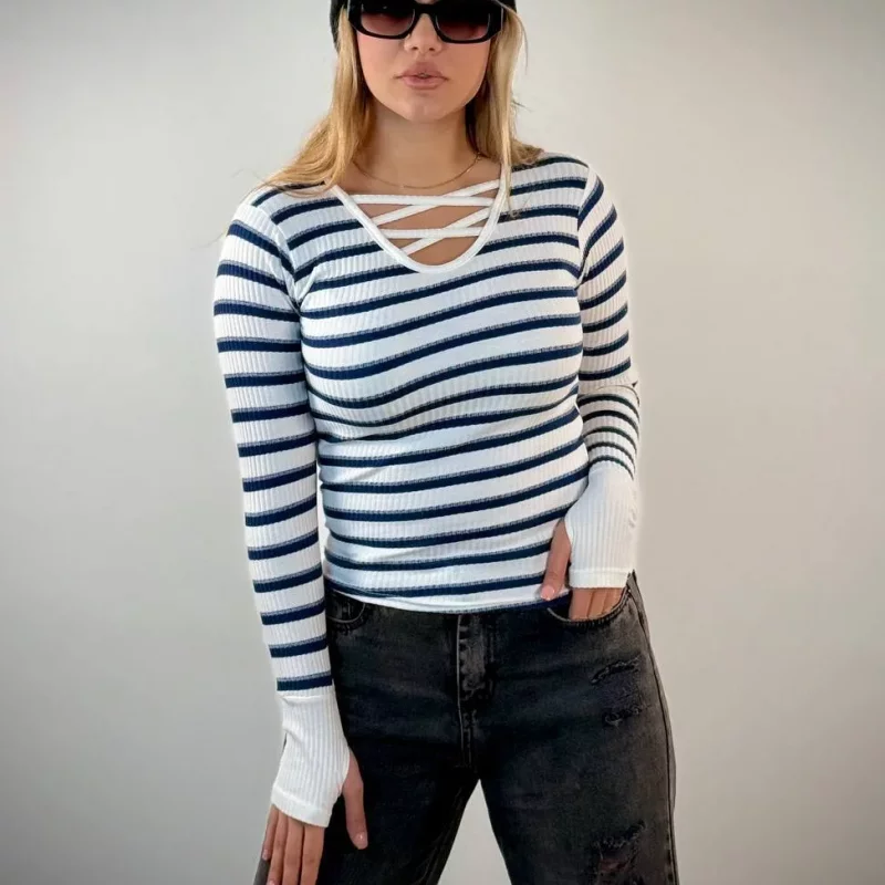 ✨ بلوز یقه هفت نواری فینگری زنانه