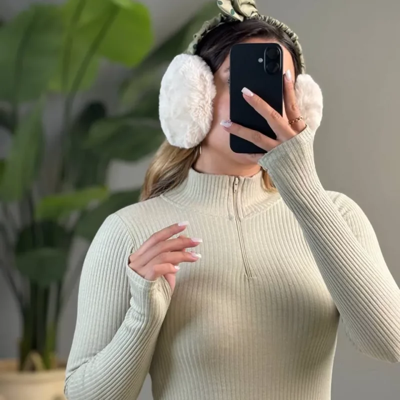 ✨ جزئیات: یقه ایستاده + نیمزیپ کاربردی + آستین فینگردار جذاب