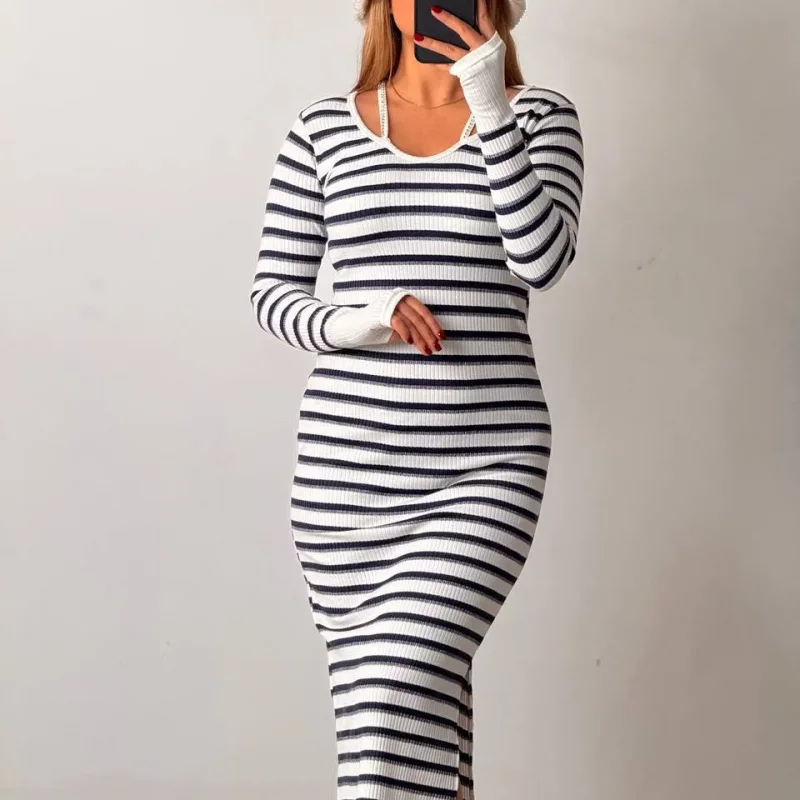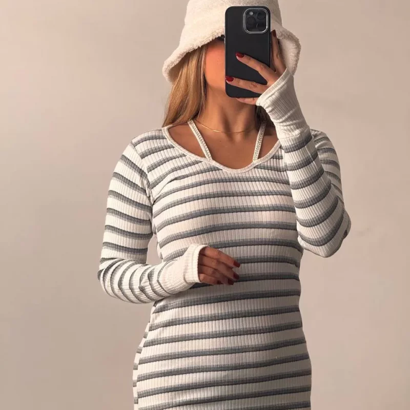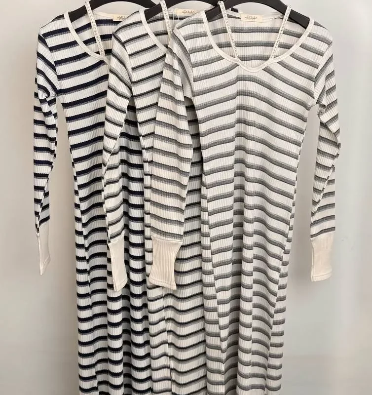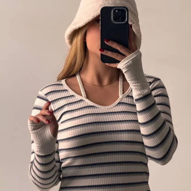 ✨ جزئیات: بندهای نگیندار دو نواری روی شانه + طرح راهراه شیک