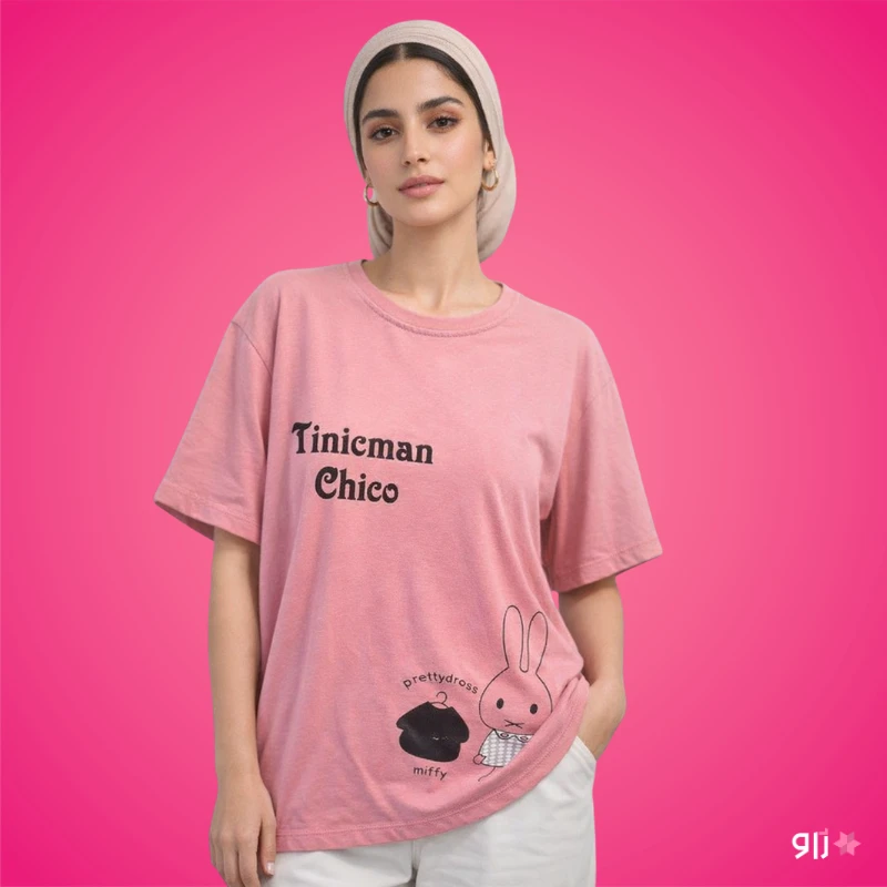 تیشرت زنانه باکسی Tinicman chico با جنس سوپر پنبه وارداتی، راحت و سبک برای استایل روزمره و خانگی، مناسب خرید حضوری و آنلاین با امکان پرداخت قسطی.
