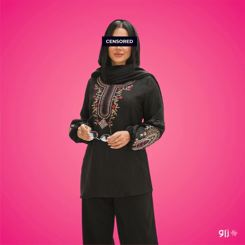شومیز گلدوزی مدل نامین با گلدوزی ظریف و پارچه خنک صوفیا، مناسب مجالس مذهبی و استایلهای خاص