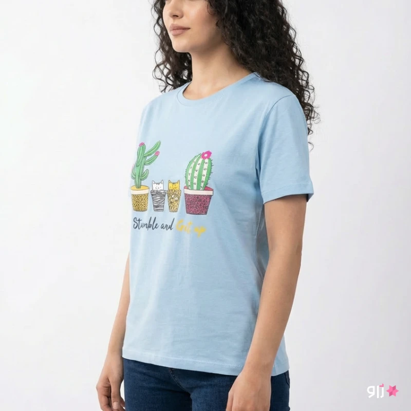 تیشرت زنانه باکسی طرح کاکتوس با جنس سوپر پنبه وارداتی، سبک، خنک و ترندی؛ انتخابی ایدهآل برای استایل روزمره با امکان خرید اقساطی.