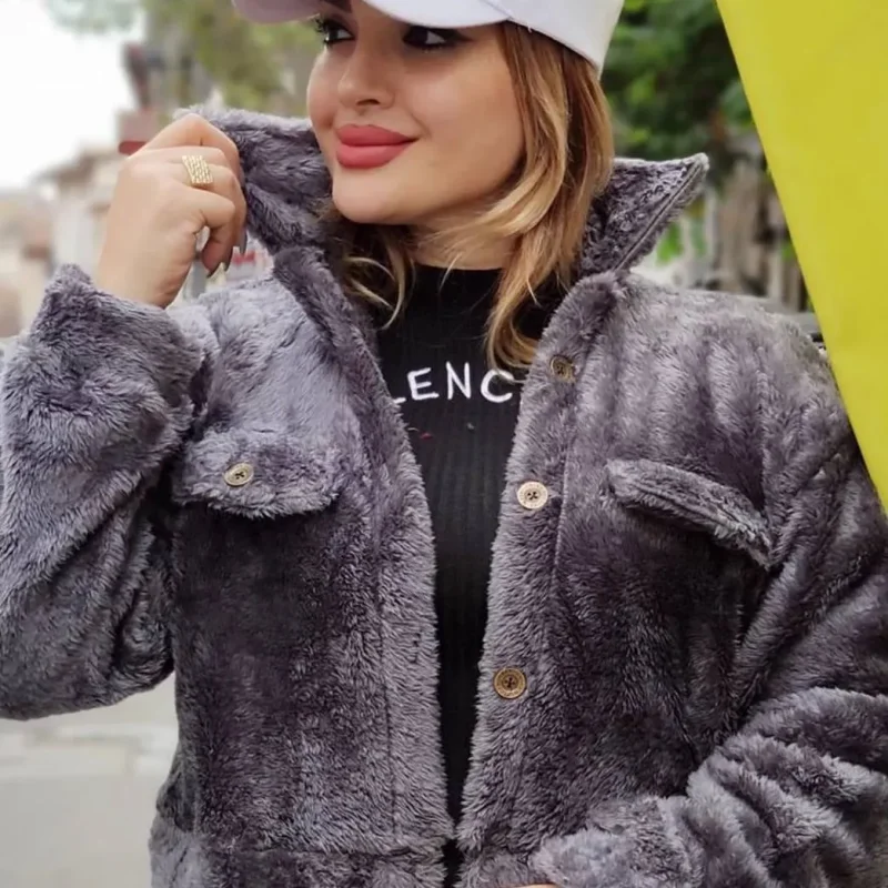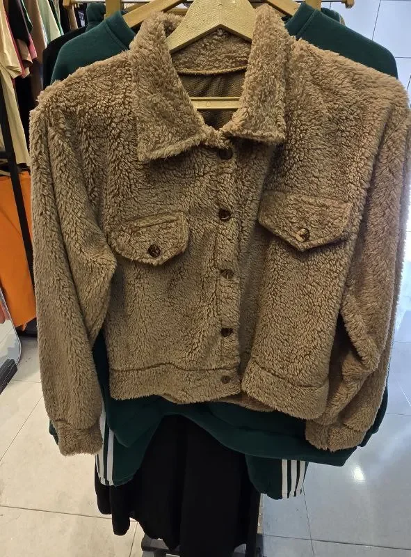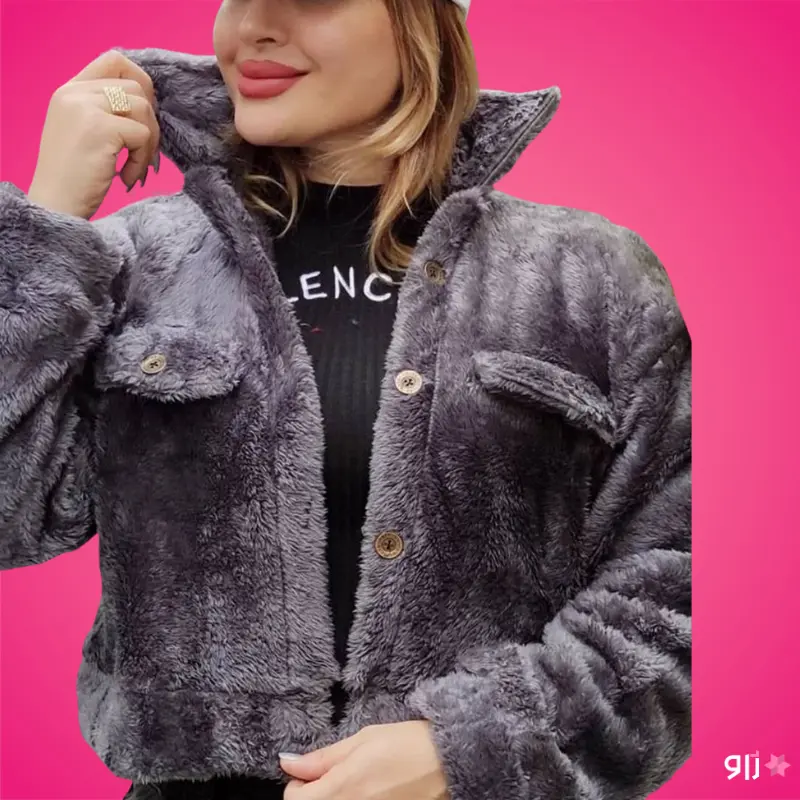 کت کراپ پولیشی زنانه با جنس تدی بسیار نرم؛ گرم، سبک و مناسب استایل روزمره و ترندی.