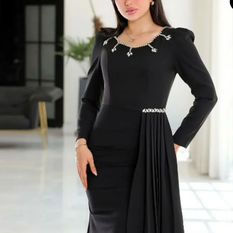 پیراهن مجلسی زنانه مدل موناکو با پارچه مازراتی گرم بالا و دوخت سنگدوزیشده، انتخابی لوکس و رسمی برای مجالس خاص؛ ایستایی عالی، تنخور شیک و مناسب استایل مجلسی.