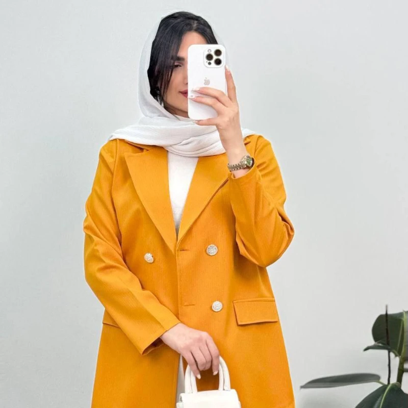 کت مازارتی تک زنانه مدل مونا، دوخت ظریف و تنخور شیک برای استایل رسمی و نیمهرسمی. جنس مازارتی دبل با کیفیت بالا و ایست عالی روی بدن.
