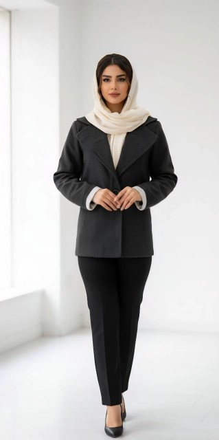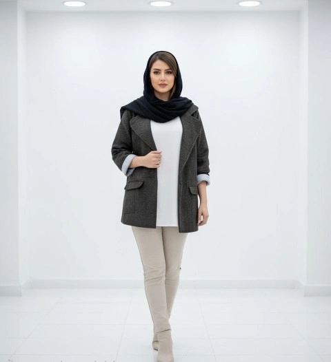کت فوتر زنانه مدل ژاکلین از جنس روناک کوبیده، تمامآستری و تکدکمه؛ همراه با خرجکار لینن در آستین و امکان خرید قسطی ✨