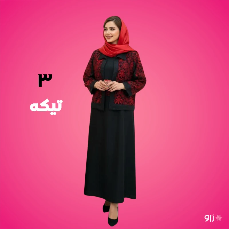 ست ۳ تیکه یلدایی زنانه مدل آویسا، انتخابی شیک و ویژه برای استایلهای مناسبتی؛ شامل کت گلیمی با طرح اصیل، سارافون کرپ مدل کتیبه و کمربند گلیمی هماهنگ برای تکمیل جلوهی یلدایی و مجلسی.