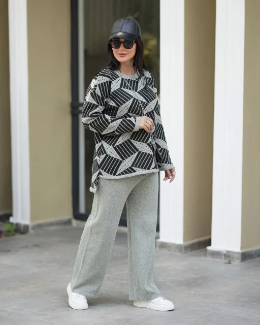 ست بافت زنانه مدل آجری با بافت گرم و نرم، انتخابی شیک و راحت برای استایل پاییزی و زمستانی شما.