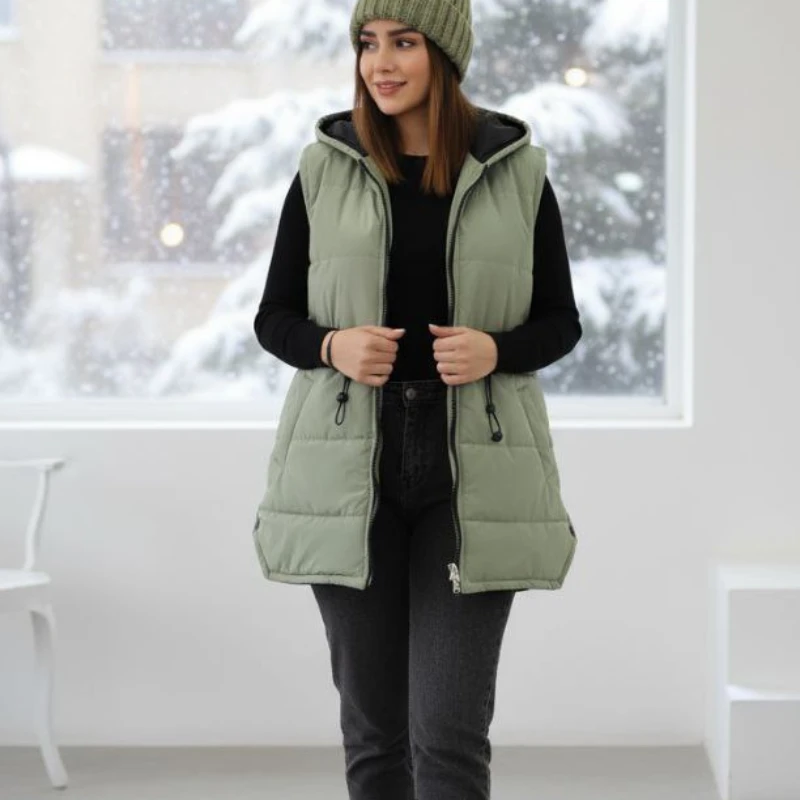 پافر زنانه بغل دکمه مدل سلنا، از جنس سیلیکونی درجهیک با آسترکشی کامل و پشمشیشه ۲۰۰ گرمی؛ گرم، سبک و شیک برای فصل سرد.