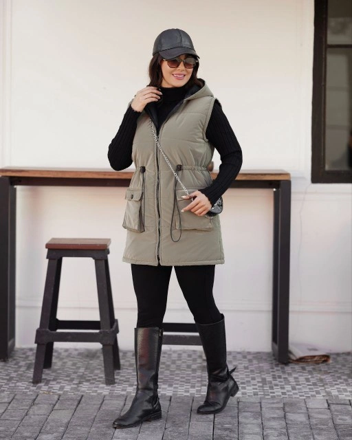 پافر زنانه دو جیب مدل سیگل، ساخته شده از سیلیکونی درجه 1، گرم و سبک، مناسب روزهای سرد و استایل روزمره شیک.